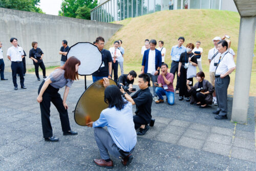 続くセミナーでは、埼玉県・林写真館4代目の林陽平氏が登壇。「選ばれる写真館になるために」をテーマに、接客・サービスや感動体験の提供方法に加え、AIレタッチソフト Evoto を活用した最新事例を具体的に紹介しました。さらに会場周辺を活かしたロケーション撮影の実技実演も行われ、モデル撮影を通じて光の使い方や演出の工夫を学べる貴重な機会となりました。参加者は熱心に耳を傾け、実践的な学びを得ていました。